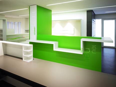 Der Internetbereich ist dem Allgemeinbereich abgewandt, somit wird die Umwelt ausgeblendet. Durch die Sitzbank als Ruheinsel wird dieser Bereich zum Wohlfühlbereich mit hoher Aufenthaltsqualität.