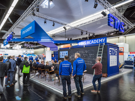 ETAS ist eine Tochtergesellschaft der BOSCH GmbH. Sie entwickelt embedded Softwaresysteme für die Automobilindustrie.Der Messestand auf der embedded world Nürnberg